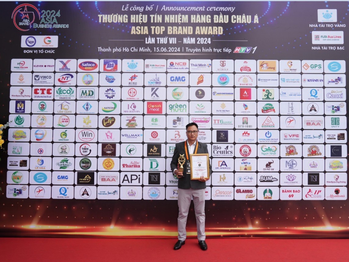 | Ông Nguyễn Thế Tùng - Tổng giám đốc Vạn Minh Group vinh dự được trao tặng bằng chứng nhận và cúp vàng tại lễ công bố “Top 10 thương hiệu tín nhiệm hàng đầu châu Á - Asia Top Brand Award” |