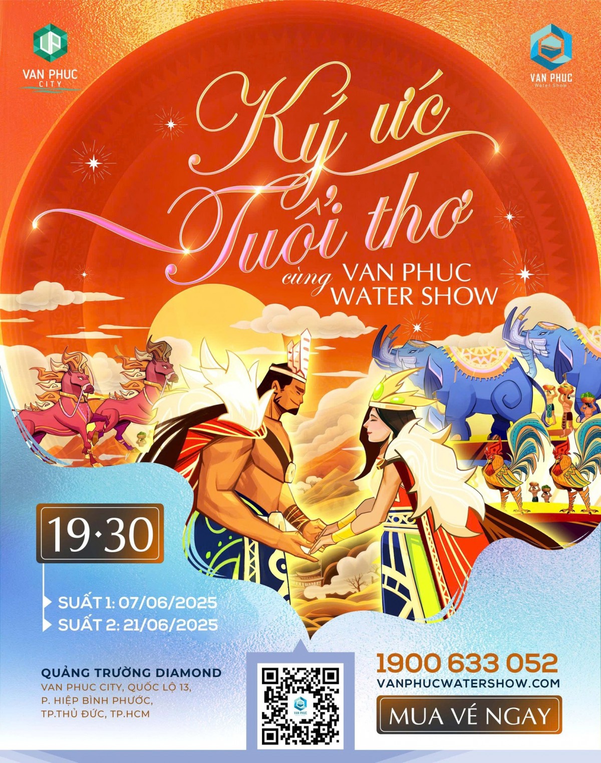 | Van Phuc Water Show – Sống lại những ký ức tuổi thơ Thời gian: 19h30 tối thứ 7 ngày 07/06 và 21/06/2025 Địa điểm: Quảng trường Diamond, Khu đô thị Vạn Phúc (Van Phuc City), Quốc lộ 13, P.Hiệp Bình Phước, TP.Thủ Đức, TP.Hồ Chí Minh. Hotline: 1900.633.052 Website: https://vanphucwatershow.com/ Fanpage: https://www.facebook.com/VanphucWatershow Ticketbox:https://ticketbox.vn/song-lai-nhung-ky-uc-tuoi-tho-cung-van-phuc-watershow-24320 |