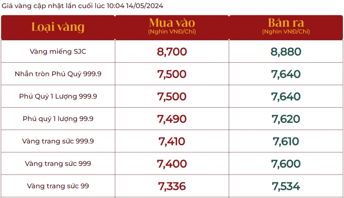 | Giá vàng giao dịch tại Tập đoàn Phú Quý |