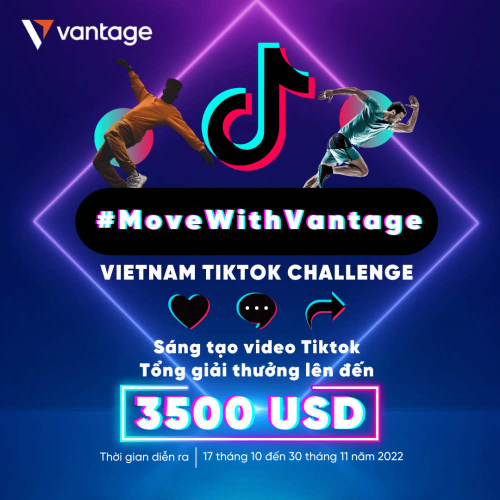 Vantage, nhà môi giới đa tài sản toàn cầu tổ chức TikTok Challenge - #MoveWithVantage tại Việt Nam. TikTok Challenge mang đến cho cộng đồng giới trẻ Việt Nam cơ hội giành giải thưởng tiền mặt trị giá lên đến 3.500 USD, cho nội dung độc đáo, sáng tạo, nêu bật các tính năng và lợi ích của ứng dụng Vantage.