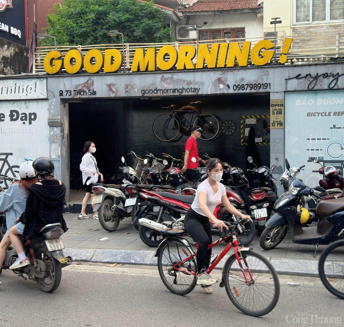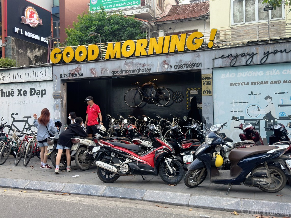 | Hình ảnh nhộn nhịp khách ra vào các quán cho thuê xe đạp |