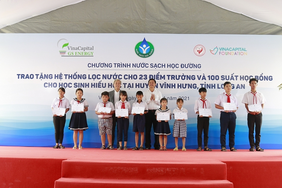 Dịp này VinaCapital GS Energy cũng trao tặng 100 suất học bổng cho 100 em học sinh học giỏi, có hoàn cảnh khó khăn tại huyện Vĩnh Hưng. Đây là phần động viên cho những nỗ lực và thành tích của các em, giúp các em thêm quyết tâm, kiên trì trong học tập cũng như phát triển bản thân để trở thành những “hạt giống tốt”, những người có ích trong tương lai và đóng góp tích cực cho xã hội.