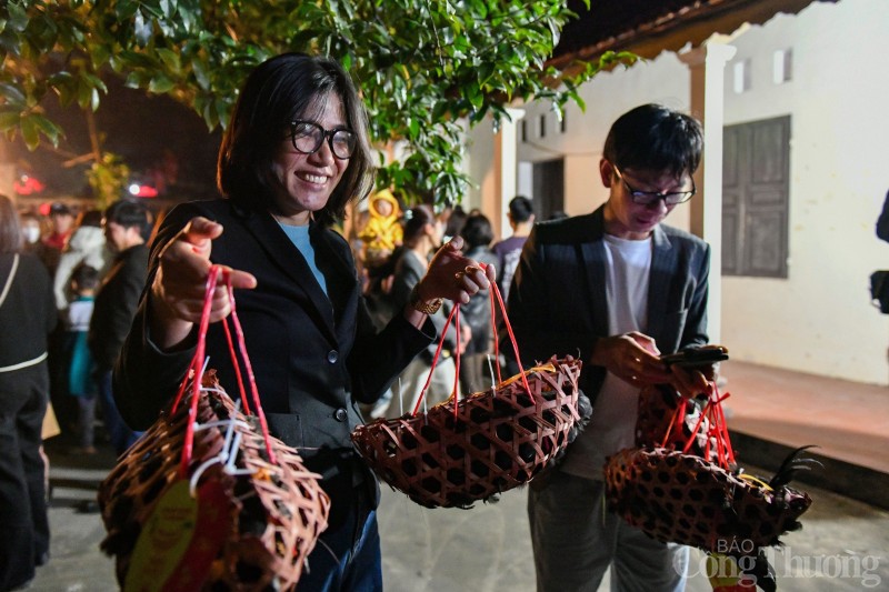 | Cầm trên tay giỏ đựng gà đen vừa mua được, anh Nguyễn Văn Quý (ở huyện Quế Võ, Bắc Ninh) phấn khởi chia sẻ, kể từ khi phiên chợ Âm Dương được phục dựng lại thì đây là lần thứ 2 anh Quý mua được gà. Để có một con gà đen năm nay, anh thành tâm gửi 470.000 đồng sau khi mất nhiều thời gian chờ đợi, vì có quá đông người xếp hàng. |