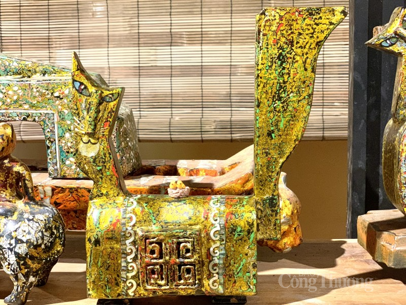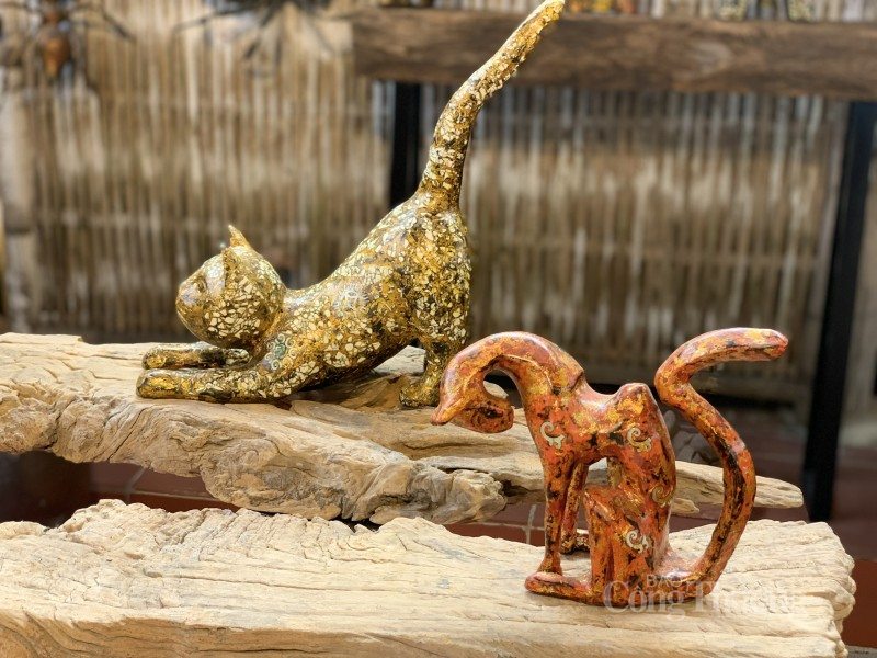 | Nghệ nhân đã sử dụng hình tượng chú mèo quen thuộc trong ca dao, trong các câu chuyện dân gian để đưa vào bộ sưu tập, tạo hình gần gũi, đáng yêu, được cách điệu, giàu giá trị sử dụng. Có khi hình tượng mèo được thiết kế là chiếc hộp, khi là lọ hoa, bàn trà, chiếc ghế |