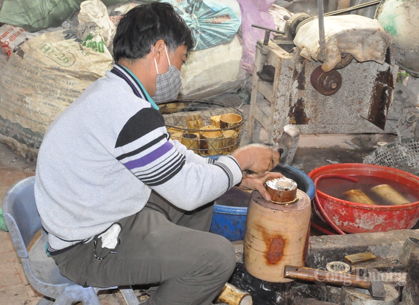 | Công đoạn tạo phôi được người thợ thực hiện trên máy |