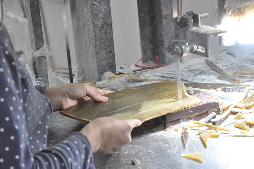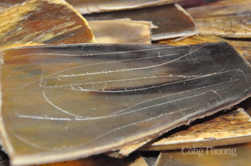 | Sừng được cắt thành những mảnh phôi nhỏ và vẽ tạo hình |