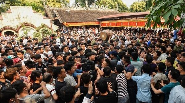 Hàng nghìn người tham gia hội Giằng bông cầu may mắn ở Sơn Đồng. Ảnh lehoi.info |