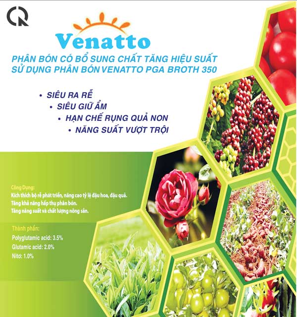 Bằng công nghệ và các hệ thống quản lý tiên tiến như: tiêu chuẩn ISO 9001, ISO/IEC 17025, ISO 14001, OHSAS 18001…, các sản phẩm phân bón: Vedagro dạng lỏng, Vedagro dạng viên, Venatto PGA Broth 350 sẽ giúp cây trồng có thể trực tiếp hấp thụ các chất dinh dưỡng, tăng sức đề kháng, tăng cường sức chịu đựng thời tiết khắc nghiệt… giúp cho cây trồng nhanh chóng phát triển. Các sản phẩm này có thể bổ sung kali cho cây trồng và thay thế cho phân chuồng, phân đạm.