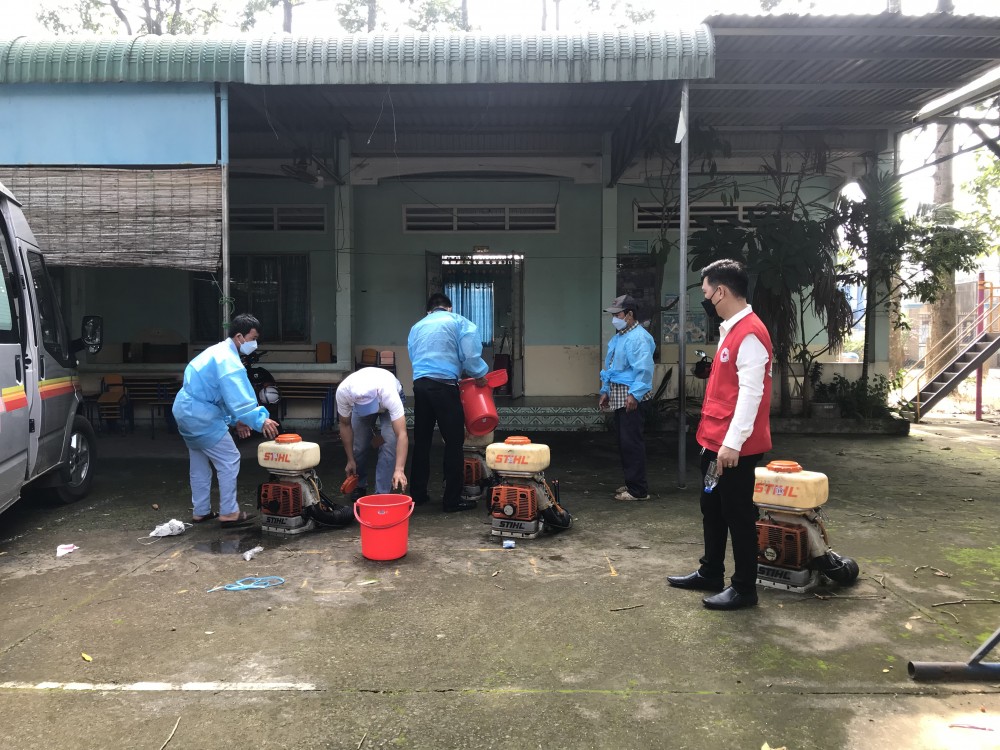 | Đội ngũ trung tâm y tế dự phòng đang tiến hành chuẩn bị phun thuốc |