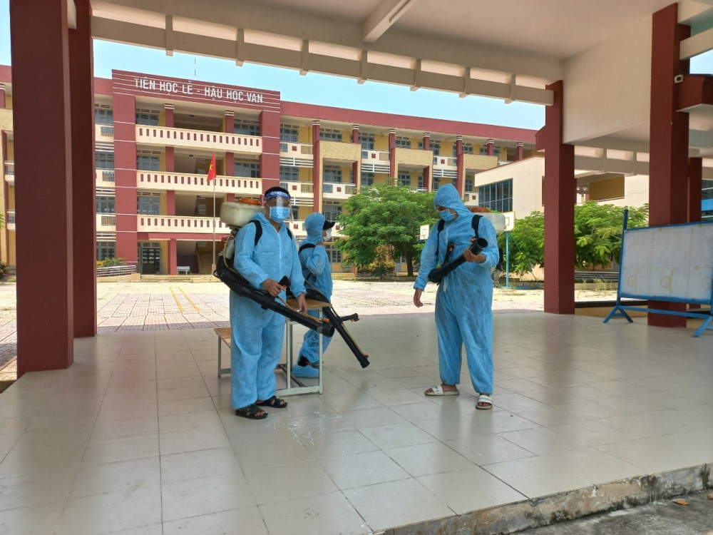 | Đội ngũ trung tâm y tế dự phòng đang tác nghiệp tại trường tiểu học |