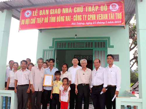 Theo lãnh đạo Công ty Vedan, trong năm 2016, Công ty Vedan Việt Nam đã trao tặng cho các hộ nghèo tại 4 tỉnh: Đồng Nai, Bà Rịa Vũng Tàu, Bình Phước, Hà Tĩnh tổng cộng 25 nhà tình thương, mỗi căn trị giá 50 triệu đồng, với tổng trị giá hơn 1 tỷ đồng.