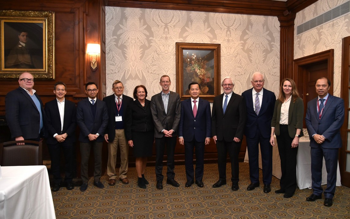 | Phó Thủ tướng Chính phủ Lê Minh Khái cùng Giáo sư Douglas Elmendorf, Hiệu trưởng Trường Harvard Kennedy, Giáo sư David Golan, Hiệu trưởng Trường Đại học Y Harvard và các giáo sư của Chương trình Việt Nam tại Đại học Harvard. Ảnh VGP/Trần Mạnh |