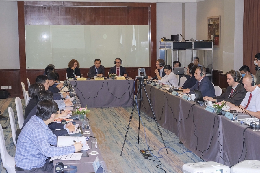 | Thứ trưởng Bộ Công Thương Đặng Hoàng An, Đại sứ Phái đoàn Liên minh châu Âu tại Việt Nam Giorgio Aliberti tại cuộc họp nhóm Đối tác Năng lượng (VEPG) lần thứ 6 |