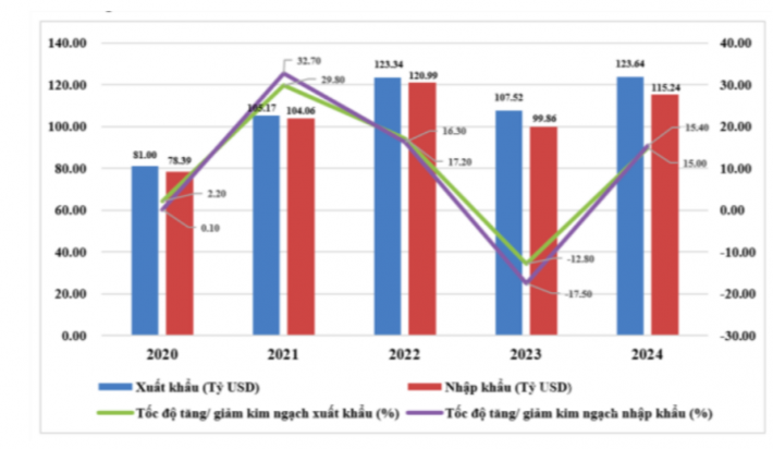 | Biểu đồ xuất nhập khẩu giai đoạn 2020-2024 |