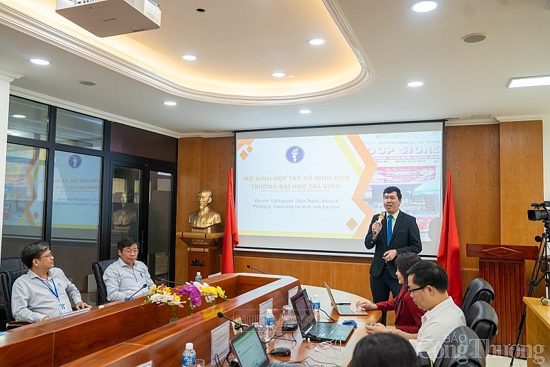 Tại tọa đàm, ông Nguyễn Văn Vũ An - Giám đốc Vườn ươm Doanh nghiệp tỉnh Trà Vinh, Giám đốc Trung tâm Đổi mới Sáng tạo và Khởi nghiệp Trường Đại học Trà Vinh đã giới thiệu về mô hình hợp tác xã sinh viên tại Trường Đại học Trà Vinh.