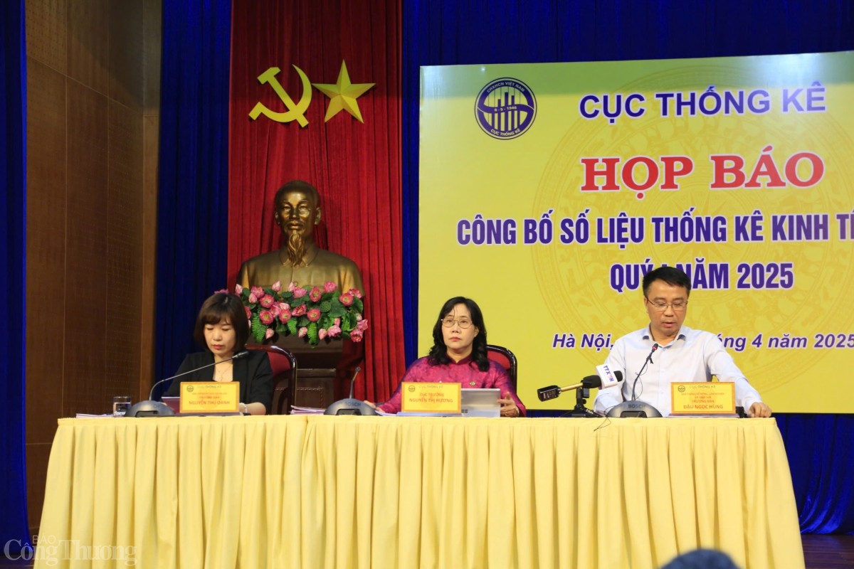 | Cục Thống kê tổ chức họp báo công bố số liệu thống kê kinh tế-xã hội quý I/2025. Ảnh: NH |