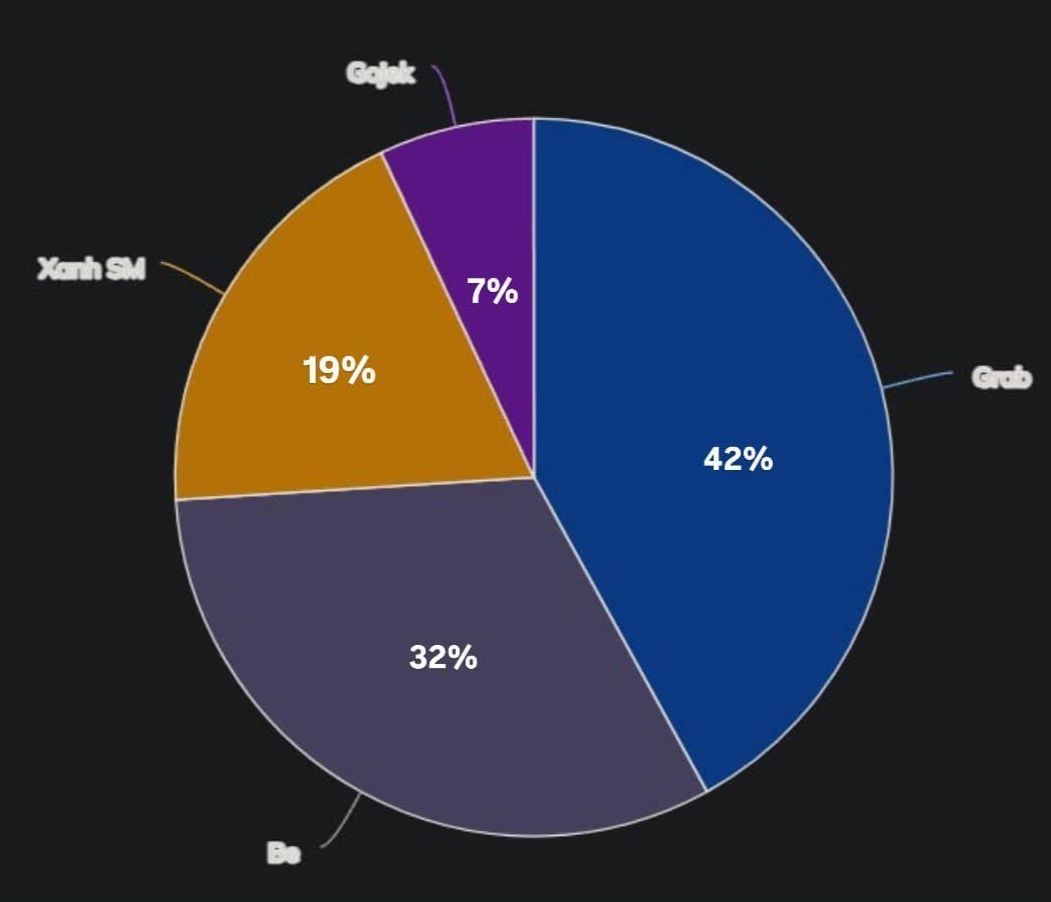 Tuy nhiên, từ khi có sự xuất hiện của Xanh SM và sự bứt phá của Be, năm 2024, thị phần của công ty tới từ Indonesia này đã giảm xuống chỉ còn 7%.