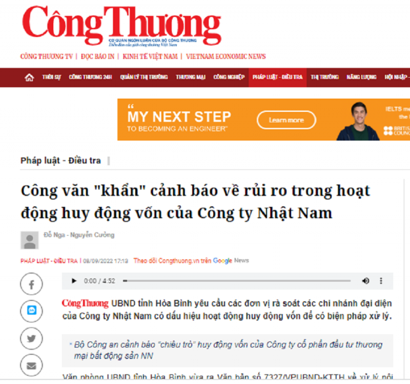 | Báo Công Thương trước đó đã đưa tin liên quan đến những bất thường của Công ty Nhật Nam |