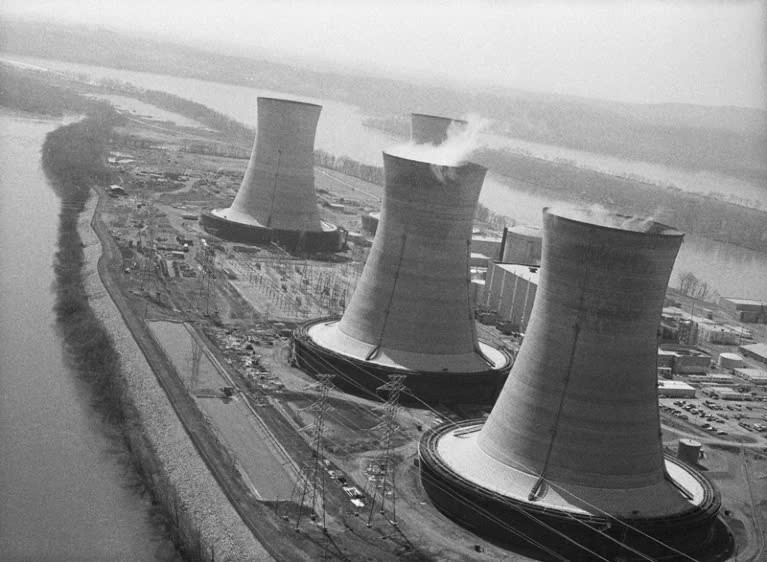 | Nhà máy điện hạt nhân Three Mile Island chụp vào ngày 28/3/1979, ngày mà một trong những lò phản ứng của nhà máy bị tan chảy một phần - Ảnh: Getty |