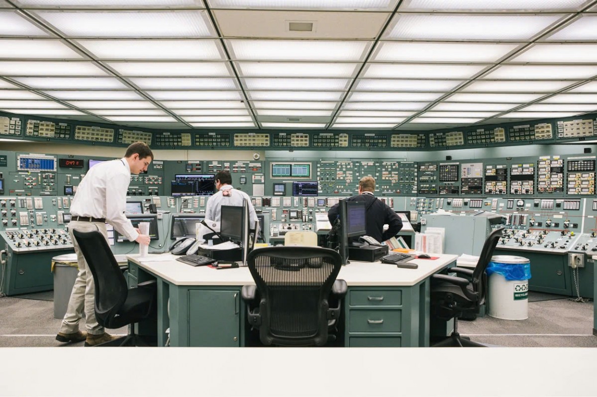 | Các nhà khai thác làm việc trong phòng điều khiển của nhà máy điện hạt nhân Three Mile Island vào năm 2018, trước khi lò phản ứng chức năng cuối cùng của cơ sở bị đóng cửa. Ảnh: Bloomberg |