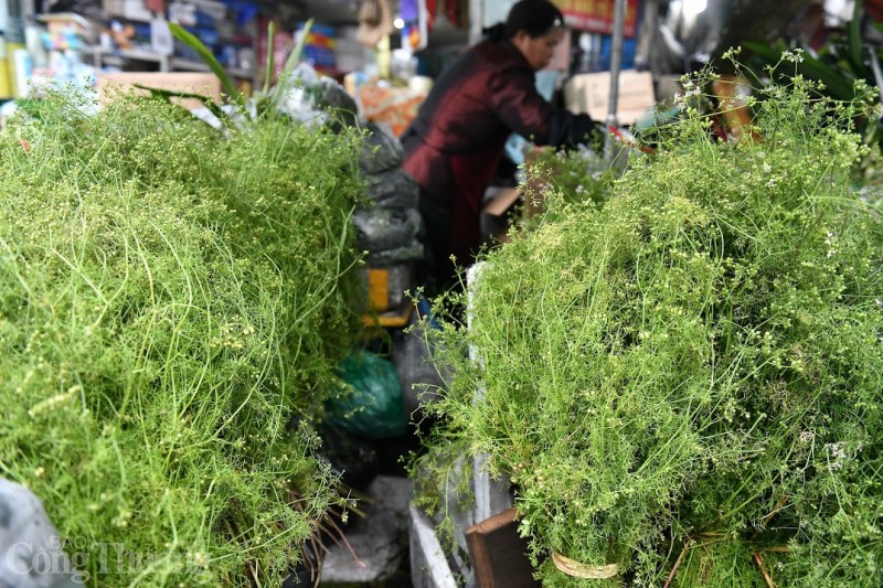| Những bó cây mùi già luôn là điểm đặc trưng của chợ Tết Hà Nội, nhiều người Hà Nội coi mùi già chính là mùi hương Tết |