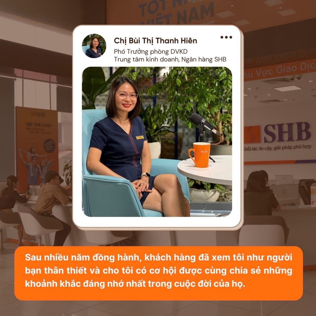 Với chị Thảo và rất nhiều nhân viên khác của SHB, mỗi ngày đi làm không đơn thuần chỉ là một công việc, mà là hành trình trao gửi niềm tin, lan tỏa yêu thương và vun đắp mối quan hệ gắn bó bền lâu với khách hàng.