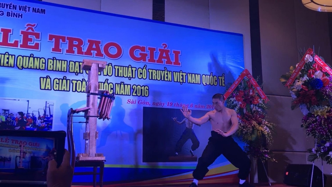 | Hình ảnh ông Nguyễn Viết Hải biểu diễn tại một Lễ trao giải võ thuật (Ảnh mạng xã hội) |