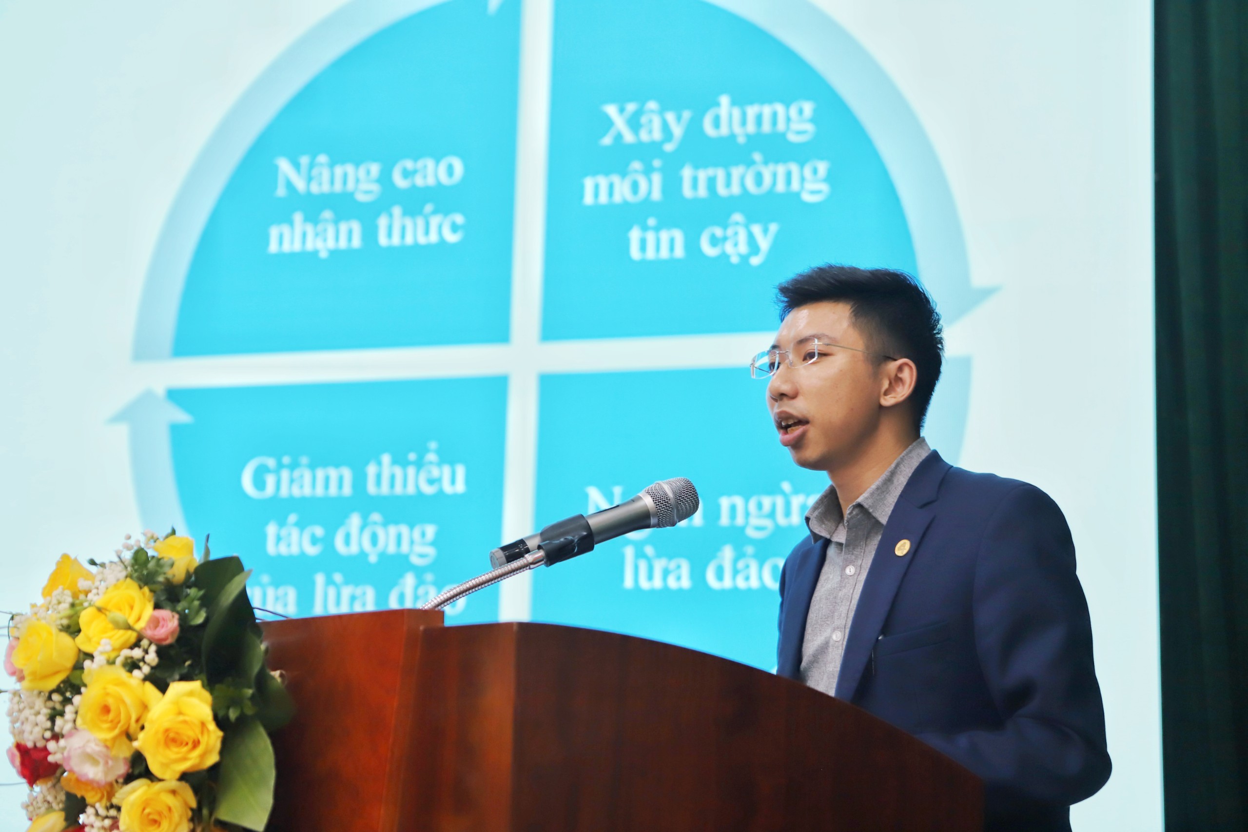 | Ông Phạm Thái Sơn - Phó Giám đốc Trung tâm Giám sát an toàn không gian mạng quốc gia, Cục An toàn thông tin, Bộ Thông tin và Truyền thông phát biểu tại hội thảo |