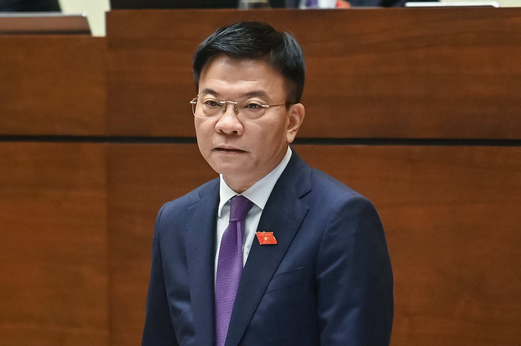 | Viện trưởng Lê Minh Trí trả lời về vụ án gỗ trắc. Ảnh: Quốc hội |