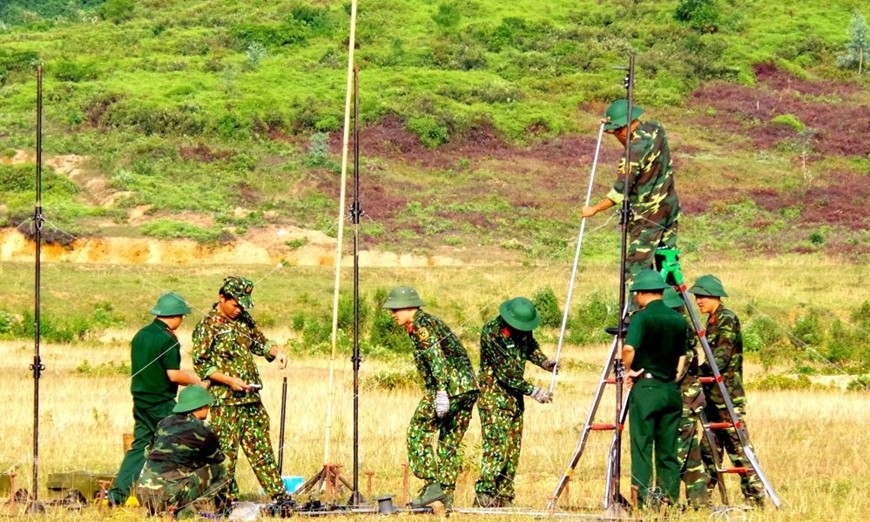 Cán bộ, nhân viên Phòng Đạn, Viện Vũ khí (Tổng cục Công nghiệp Quốc phòng) chuẩn bị trận địa phục vụ thử nghiệm vũ khí. - Ảnh: Báo QĐND