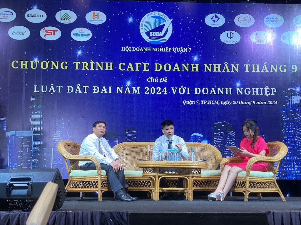 Đây là một trong những chia sẻ của chuyên gia tại buổi sinh hoạt chuyên đề "Chương trình cà phê cùng doanh nhân với chủ đề Luật Đất đai năm 2024 với doanh nghiệp” do Hội Doanh nghiệp quận 7, TP. Hồ Chí Minh tổ chức với sự tham dự 200 đại diện doanh nghiệp đến từ quận 7 và Tân Bình.