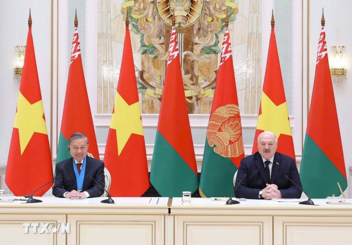 Trong khuôn khổ chuyến thăm cấp Nhà nước Cộng hòa Belarus, chiều 12/5 theo giờ địa phương, ngay sau hội đàm, Tổng Bí thư Tô Lâm và Tổng thống Aleksandr Lukashenko đã phát biểu với báo chí về kết quả hội đàm. Tại hội đàm, hai bên đã nhất trí nâng cấp quan hệ lên Đối tác chiến lược.