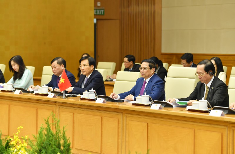 | Hai Thủ tướng nhất trí mở rộng hợp tác sang các lĩnh vực tiềm năng như công nghệ thông tin, chuyển đổi số, giáo dục đào tạo, nghiên cứu khoa học, văn hóa, du lịch, giao lưu nhân dân... Ảnh: Tuấn Huy |