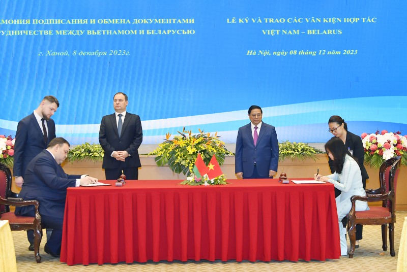 Thủ tướng Phạm Minh Chính hoan nghênh kết quả Diễn đàn doanh nghiệp Việt Nam - Belarus tổ chức tại TP. Hồ Chí Minh ngày 7/12/2023, trong khuôn khổ chuyến thăm đã thu hút hơn 100 doanh nghiệp hai nước tham dự và bày tỏ vui mừng trước việc dự án đầu tư “Nhà máy sản xuất và lắp ráp ô tô MAZ” của Belarus tại tỉnh Hưng Yên trị giá 15 triệu USD, hiện đang hoạt động hiệu quả; nghiên cứu thành lập các liên doanh sản xuất ở cả Việt Nam và Belarus trong các ngành nghề phù hợp với tiềm năng và nhu cầu của hai bên.