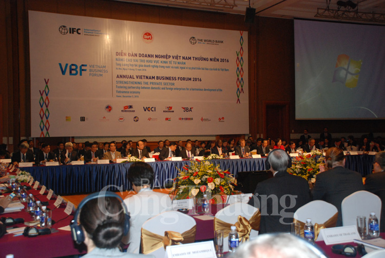 Tham dự và phát biểu tại VBF 2016, Thủ tướng Chính phủ Nguyễn Xuân Phúc nhấn mạnh đến vai trò của kinh tế tư nhân với sự phát triển bền vững của nền kinh tế, đồng thời khẳng định, Chính phủ Việt Nam cam kết tiếp tục hoàn thiện thể chế kinh tế thị trường, chính sách pháp luật, tạo mọi điều kiện để khu vực kinh tế tư nhân (KV KTTN) phát triển mạnh mẽ.