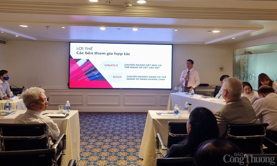 “Với tâm huyết và mong muốn đóng góp một phần vào công tác phòng cháy chữa cháy, Vinatex và KOVA đã hợp tác nghiên cứu ứng dụng Nano chống cháy vào vật liệu chống cháy trong lĩnh vực vải dùng may bảo hộ lao động, tấm phủ, sản phẩm gia dụng… Được sản xuất từ sợi meta - aramid và chất chống tĩnh điện trong vật liệu dệt đã được phủNano (silicat từ vỏ trấu - được thế giới công nhận và đánh giá cao) để tạo ra vải chống cháy, đây là sản phẩm Nano xanh khi cháy có các hợp chất hữu cơ bay hơi VOC (Volatile Organic Compounds-) gầnbằng 0... Tính năng vượt trội này giúp bảo vệ người sử dụng không chỉ hạn chế những thiệt hại do đám cháy gây ra mà còn không bị ngạt bởi khói độc, góp phần bảo vệ môi trường và sức khỏe con người.”- ông Trình cho biết.
