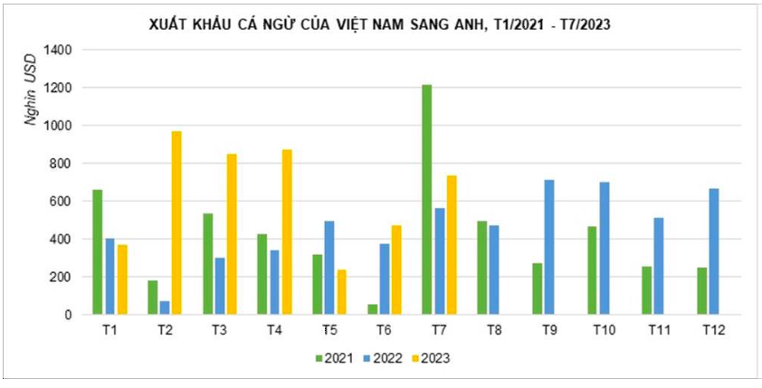 Theo số liệu thống kê của Hải quan Việt Nam, sau khi sụt giảm mạnh 51% trong tháng 5/2023 xuất khẩu cá ngừ của Việt Nam sang Anh tiếp tục tăng trong 2 tháng sau đó. Sự tăng trưởng này đã góp phần nâng tổng kim ngạch xuất khẩu cá ngừ của Việt Nam sang Anh trong 7 tháng đầu năm 2023 lên cao hơn 77% so với cùng kỳ năm 2022, đạt hơn 4,5 triệu USD.