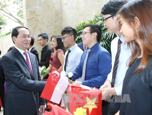 Sinh viên Việt Nam tại Singapore chào đón Chủ tịch nước Trần Đại Quang và Phu nhân tại khách sạn Shangri-La