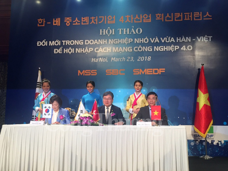 Nhân chuyến thăm của Tổng thống Hàn Quốc Moon Jae In và phu nhân tới Việt Nam từ ngày 22-24/3, sáng ngày 23/3, tại Hà Nội đã diễn ra hội thảo Đổi mới trong doanh nghiệp nhỏ và vừa Hàn - Việt để hội nhập cách mạng công nghiệp 4.0.