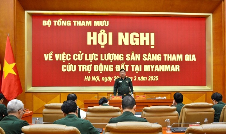 Chiều 29/3, tại Hà Nội, Bộ Tổng Tham mưu Quân đội nhân dân Việt Nam tổ chức Hội nghị về việc cử lực lượng sẵn sàng tham gia cứu trợ, tìm kiếm cứu nạn, khắc phục hậu quả động đất tại Myanmar.