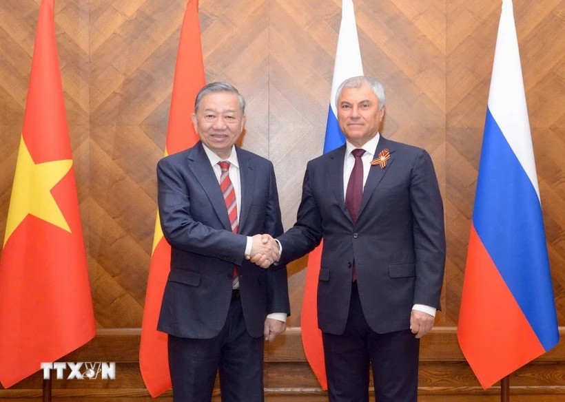 Ngày 10/5, trong khuôn khổ chuyến thăm chính thức Liên bang Nga và tham dự Lễ kỷ niệm 80 năm Ngày Chiến thắng trong Chiến tranh Vệ quốc vĩ đại, Tổng Bí thư Ban Chấp hành Trung ương Đảng Cộng sản Việt Nam Tô Lâm đã có cuộc hội kiến với Chủ tịch Duma Quốc gia Liên bang Nga Vyacheslav Volodin tại trụ sở Duma Quốc gia ở thủ đô Moskva.