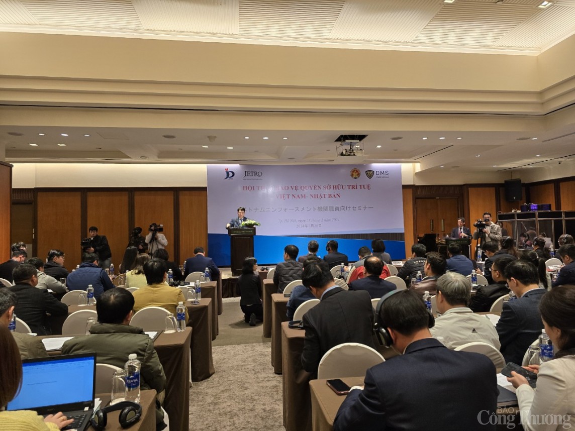 Chiều 28/2, tại Hà Nội, Cơ quan Sáng chế Nhật Bản (JPO), Tổ chức Thúc đẩy Ngoại thương Nhật Bản (JETRO) phối hợp với Tổng cục Quản lý thị trường, Bộ Công Thương và Bộ Khoa học và Công nghệ Việt Nam tổ chức Hội thảo Bảo vệ quyền sở hữu trí tuệ Việt Nam - Nhật Bản.