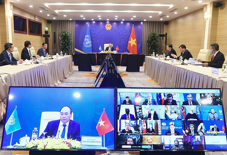 Phát biểu tại phiên thảo luận, Thủ tướng Nguyễn Xuân Phúc đánh giá cao sáng kiến của Chính phủ Anh và Thủ tướng Boris Johnson trong việc tổ chức cuộc họp của HĐBA LHQ về chủ đề “Giải quyết các nguy cơ đối với hoà bình và an ninh quốc tế liên quan đến khí hậu”.