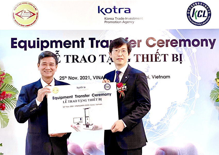 Hoạt động trao tặng thiết bị và đào tạo kỹ thuật liên quan đến thử nghiệm, đánh giá và chứng nhận trong lĩnh vực xây dựng / dệt may này là một trong những hoạt động được hỗ trợ và thuộc Dự án CSR toàn cầu KOTRA năm 2021 (dự án chuyển giao thiết bị không dùng cho các nước đang phát triển). Thiết bị được trao tặng tại buổi lễ là máy thử kéo nén đa năng (Universal Testing Machine, UTM) có lực kéo lên đến 50KN.