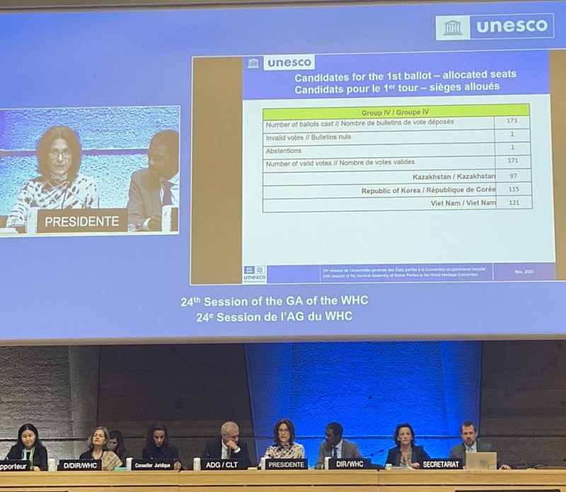 Ngày 22/11/2023 tại thủ đô Paris, Cộng hòa Pháp, trong khuôn khổ Kỳ họp Đại hội đồng lần thứ 24 các quốc gia thành viên Công ước Bảo vệ Di sản văn hóa và Thiên nhiên thế giới (Công ước Di sản thế giới), Việt Nam đã trúng cử trở thành thành viên của Ủy ban Di sản Thế giới nhiệm kỳ 2023 - 2027.