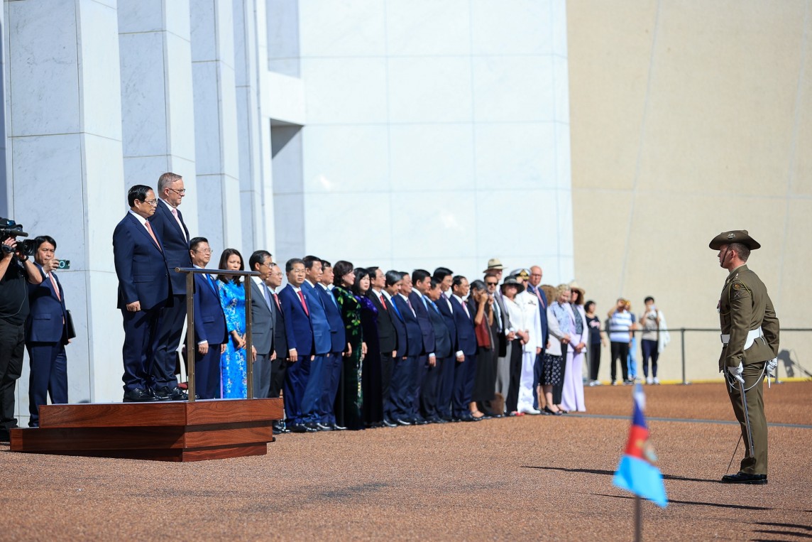 | Đội trưởng Đội Danh dự quân đội Australia trân trọng mời Thủ tướng Phạm Minh Chính duyệt Đội Danh dự - Ảnh: Nguyên Minh |