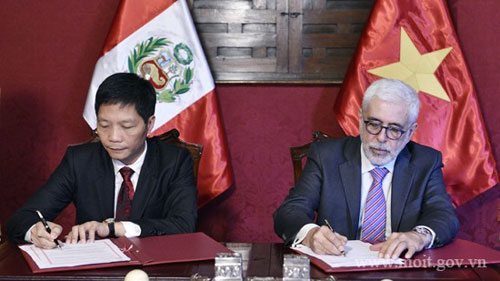 | Lễ ký Hiệp định thành lập Ủy ban liên Chính phủ Việt Nam-Peru. |