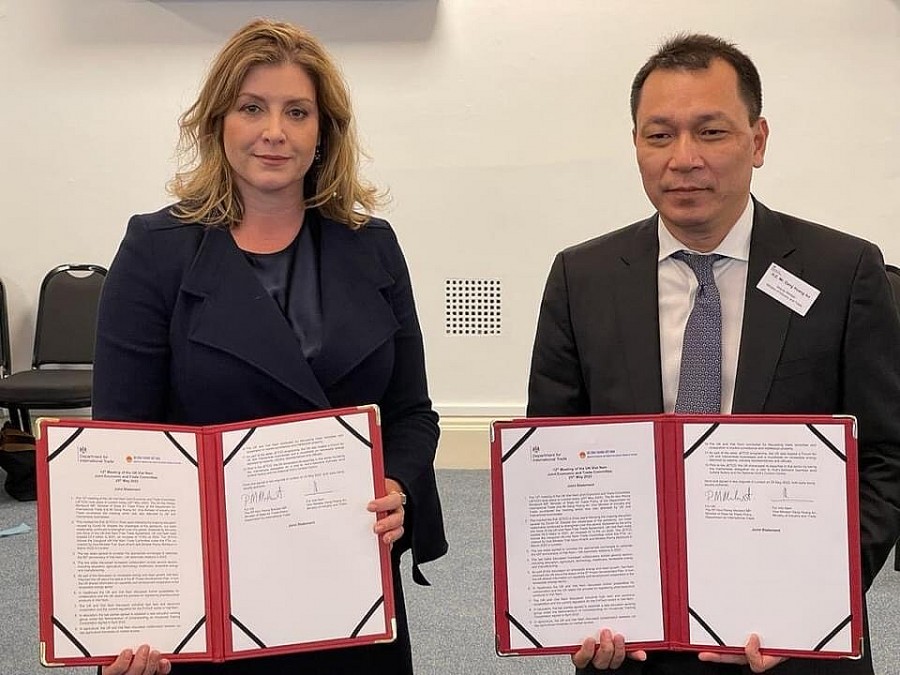 | Thứ trưởng Bộ Công Thương Việt Nam Đặng Hoàng An và Quốc vụ khanh Chính sách thương mại, Bộ Thương mại Quốc tế Vương quốc Anh Penny Mordaunt ký biên bản Khóa họp lần thứ 12 Ủy ban hỗn hợp về hợp tác kinh tế và thương mại Việt Nam - Vương quốc Anh |