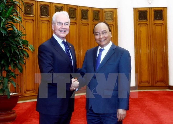 Bộ trưởng Y tế và Phúc lợi con người Hoa Kỳ Thomas Price cảm ơn Thủ tướng Nguyễn Xuân Phúc đã dành thời gian tiếp và bày tỏ đánh giá cao quan hệ đối tác Việt Nam-Hoa Kỳ trong hơn 20 năm qua.