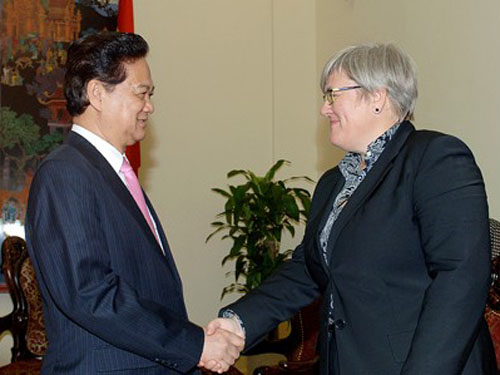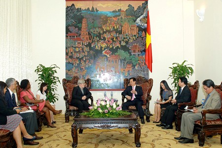 CôngThương - Chiều 25/8, tại Trụ sở Chính phủ, Thủ tướng Nguyễn Tấn Dũng đã tiếp bà Rachel Kyte, Phó Chủ tịch Ngân hàng Thế giới (WB) phụ trách về biến đổi khí hậu đang có chuyến thăm làm việc và dự Hội đàm cấp cao giữa Thường trực Ủy ban quốc gia về biến đổi khí hậu Việt Nam và Phái đoàn WB tại Hà Nội.
